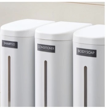 マグネットディスペンサーを3本セットで揃えると、シャンプー・コンディショナー・ボディソープの統一感が出て、浴室全体のデザイン性がアップします。